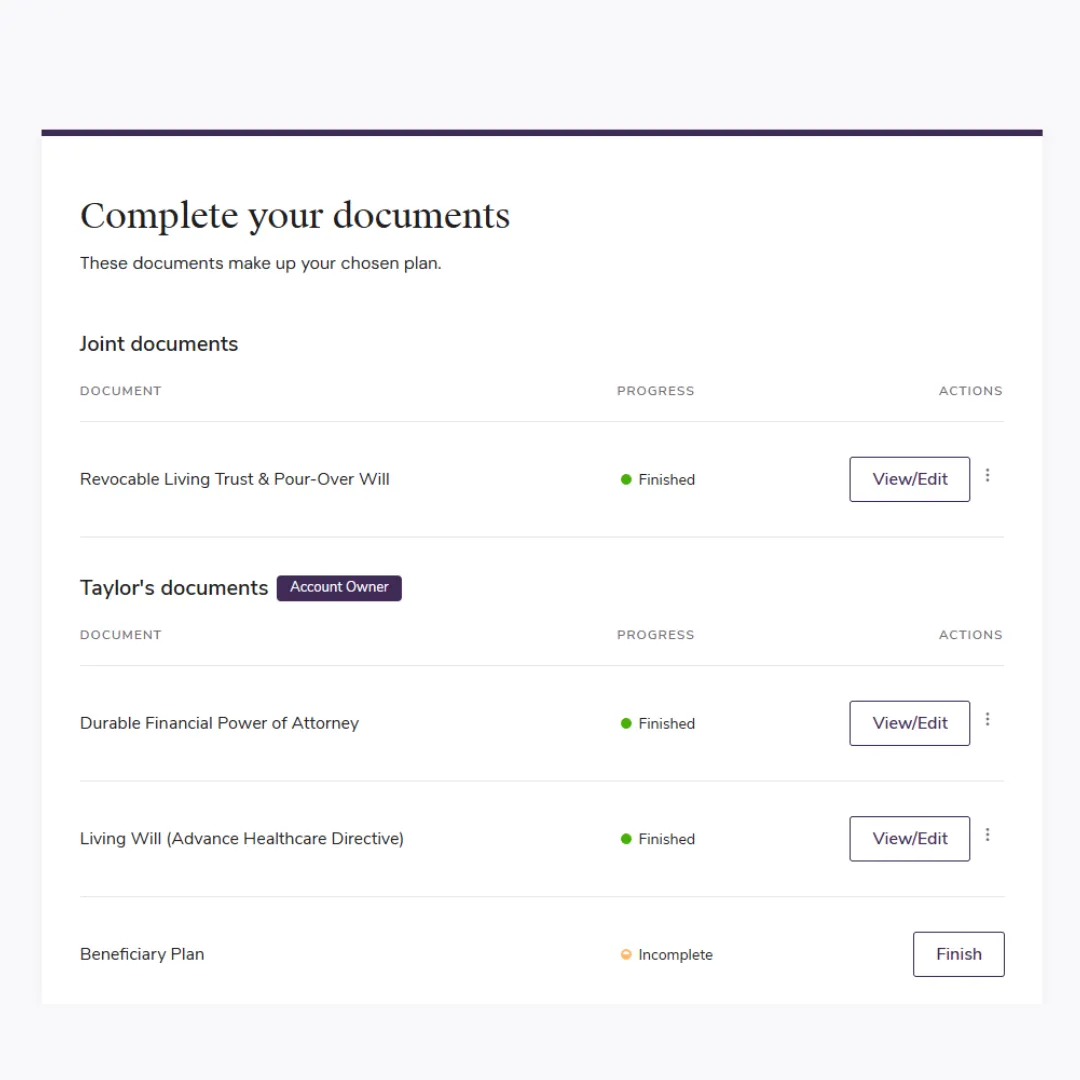 Need to view or edit your estate plan? Login below and use your credentials listed in your binder.